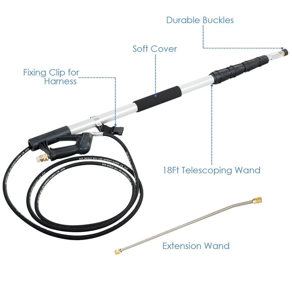 18-Foot Commercial-Grade Telescoping Pressure Washer Spray Wand with 5 Nozzles, 4000 PSI